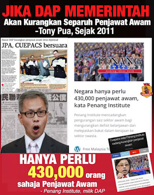 tony pua paling vokal nak kurangkan jumlah penjawat awam Msia yg dia kata paling ramai di dunia.. klu kurangkan separuh memang berbilion penjimatan.