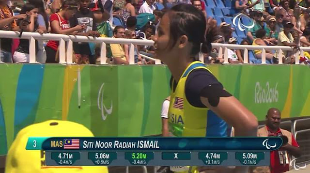 Rio, 15 Se - Atlet para negara, Siti Noor Radiah, berjaya meraih pingat gangsa bagi acara Lompat Jauh T20 Wanita berjaya meraih gangsa dalam acara yang berlangsung sebentar tadi.