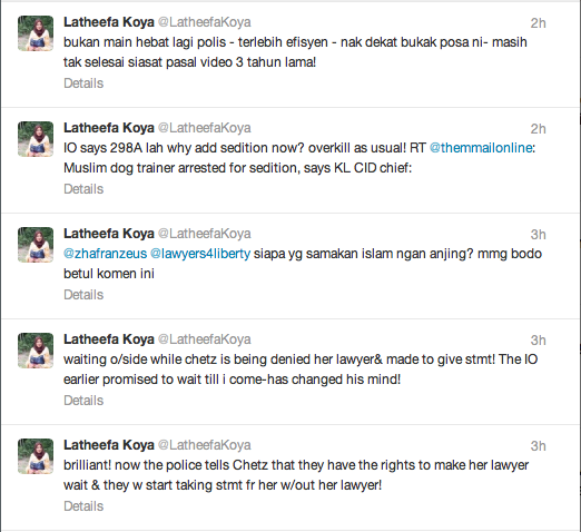 Lihat dibawah tweet oleh Lathefah Koya yang bertindak sebagai peguam kepada perempuan itu mempertikaikan tindakan yang diambil oleh polis.