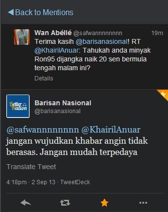 Awal hari ni statement mengatakan kenaikan harga minyak sekadar khabar angin jgn percaya.. Haa ternyata another khabar angin yg benar.. Malaysia mmg tak sunyi dgn khabar angin yg benar kan... |