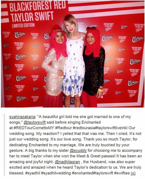 perempuan yg pakai baju putih tu la yg baru kawin tu.. taylor dedicated kan lagu enchanted kat dia : ...