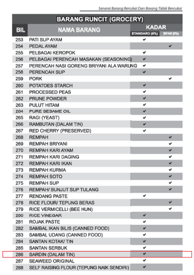 2. Ikan sardin di dalam tin dikenakan GST berkadar standard 6%