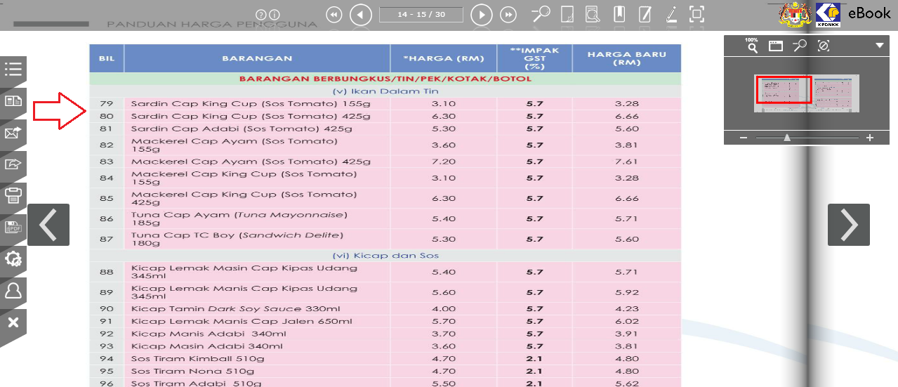 Jika masih tidak percaya sardin dalam tidak dikenakan cukai jualan anda boleh menyemak Panduan Harga Pengguna yang dikeluarkan oleh KPDNKK untuk semakan harga selepas GST: