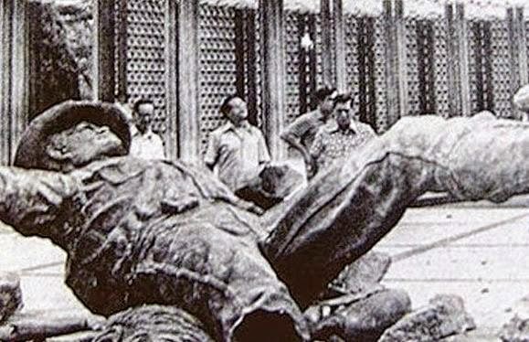 kesan kerosakan di Tugu Negara akibat anasir sabotaj oleh pengganas PKM |