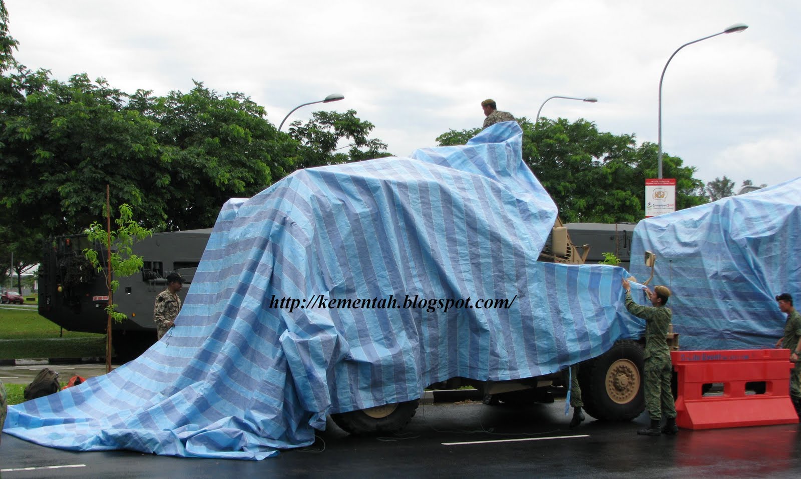 You can see them as part of "Wave Nine", which is at the tail end of the 2-km long column formed by 210 vehicles from the SAF and Home Team.