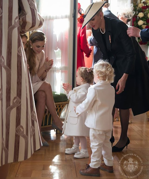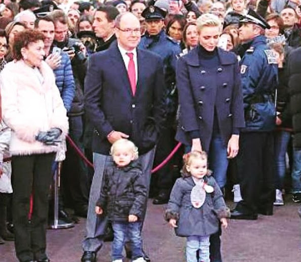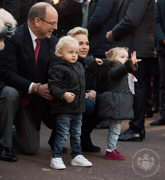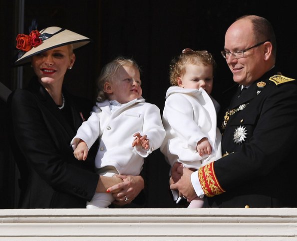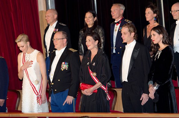 Prince Albert II, Princess Charlene, Prince Jacques, Princess Gabriella, Princess Caroline of Hanover, Princess Stephanie, Princess Alexandra, Louis Ducruet, Andrea Casiraghi, India Casiraghi, Tatiana Santo Domingo, Sacha Casiraghi, Charlotte Casiraghi, Pierre Casiraghi and Beatrice Borromeo attend the Monaco National Day Celebrations in the Monaco Palace Courtyard on November 19, 2016 in Monaco.