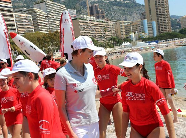 On June 12, 2017, Princess Charlene of Monaco attended the 'Water Safety Day" that was organised on the Larvotto Beach by Her Foundation, the Aquatic Rescue Center of Monaco (CSAM) and Cap O Pas Cap in partnership with the Monegasque Red Cross.