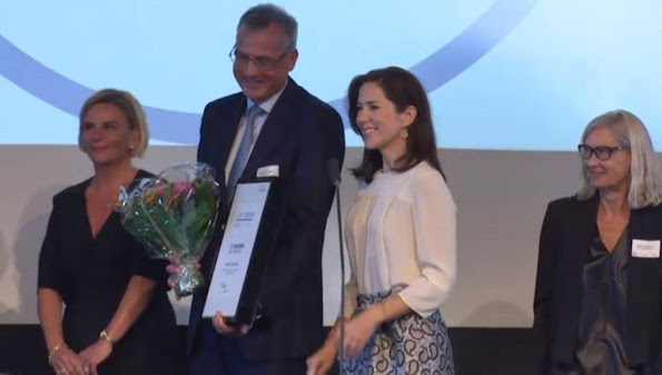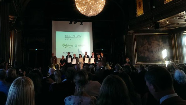 Crown Princess Mary of Denmark attended the award ceremony of the CSR Priser for social responsible entrepreneurship at the Exchange building in Copenhagen, Denmark on September 07, 2015. (CSR Awards is a major annual conference, which aims to create awareness and debate on corporate social responsibility. The objective of CSR Awards is to raise awareness of CSR and motivate more companies to integrate CSR in the way of doing and innovating business.)