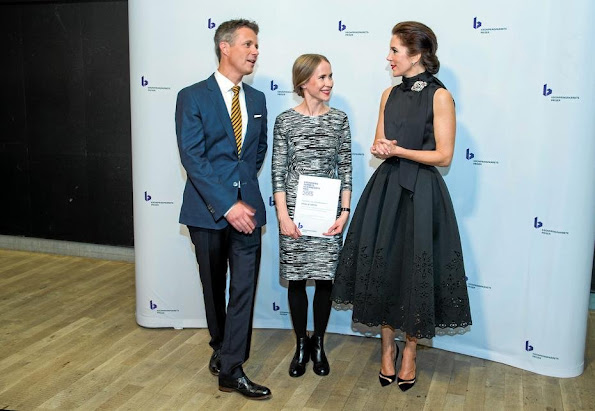 Crown Prince Frederik and Crown Princess Mary of Denmark tonight awarded the 2015 edition of their culture prize (Kronprinsparrets Priser ), during a ceremony at the Culture Yard in Helsingør on October 3, 2015. Crown Prince Frederik of Denmark and Crown Princess Mary of Denmark took to the stage to deliver speeches during the evening, which included musical performances by a number of local musicians, to present four awards. The ‘Social’ prize went to the Danish Refugee Council program "Mind Your Own Business", which helps minority youth boys to “Strengthen Their Professional Skills and Social Relations” to create their own micro-enterprise. Theatre director Elisa Kragerup took home the cultural award, both the social and cultural prizes come with 500,000DKK prize money. ‘Stardust Prizes’ were awarded to designer Mark Tan and author Amalie Smith.
