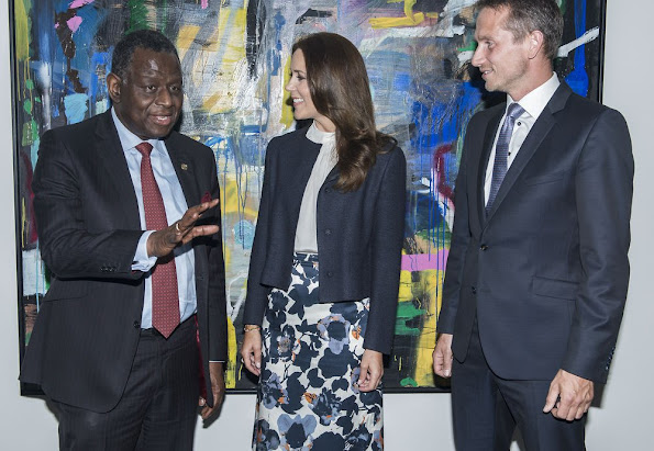 Crown Princess Mary of Denmark attend a meeting with Foreign Minister Christian Jensen and Executive Director of UNFPA at the Ministry of Foreign Affairs of the Dk in Copenhagen on August 26, 2015.