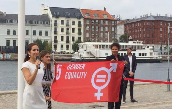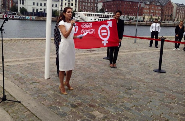 Crown Princess Mary of Denmark attended the meeting of the ‘Women Deliver’ and she raised a flag for the United Nation’s new Global Goals at the Ministry of Foreign Affairs of Denmark on September 1, 2015 in Copenhagen.
