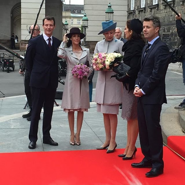On October 6, 2015, Queen Margrethe II and Prince Henrik, Crown Prince Frederik and Crown Princess Mary, Prince Joachim and Princess Marie and Princess Benedikte attend the opening of the parliament (Folketinget) in Copenhagen, Denmark.