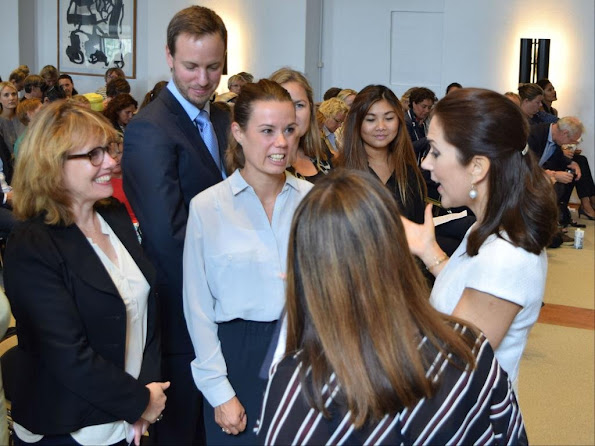 Crown Princess Mary met with Danish recipients of the Crown Princess Mary Scholarship at Frederik VIII's Palace on September 2, 2015 in Copenhagen, Denmark. (The Crown Princess Mary Scholarship (For Study In Denmark). The University of Copenhagen has partnerships with a number of Australian universities, including the University of Tasmania. In University of Copenhagen offers two Crown Princess Mary Scholarships to students from the Australian partner universities)
