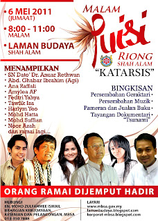 BACA PUISI PENA: MALAM PUISI GAZA II bersama HALUAN yang memimpin Life Line for Gaza untuk memungut derma bagi melancarkan misi kemanusiaan Flotila II ke Gaza diadakan pada 06 Mei jam 8.30 malam bertempat di Rumah PENA, 961-7, Jalan Dewan Bahasa, 50460 Kuala Lumpur.