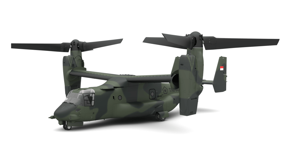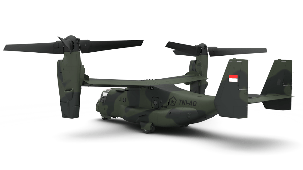 The Government of Indonesia has requested to buy eight (8) MV-22 Block C Osprey aircraft. Also included are twenty-four (24) AE 1107C Rolls Royce Engines; twenty (20) AN/AAQ-27 Forward Looking InfraRed Radars; twenty (20) AN/AAR-47 Missile Warning Systems; twenty (20) AN/APR-39 Radar Warning Receivers; twenty (20) AN/ALE-47 Countermeasure Dispenser Systems; twenty (20) AN/APX-117 Identification Friend or Foe Systems (IFF); twenty (20) AN/APN-194 Radar Altimeters; twenty (20) AN/ARN-147 VHF Omni-Directional Range (VOR) Instrument Landing System (ILS) Beacon Navigation Systems; forty (40) ARC-210 629F-23 Multi-Band Radios (Non-COMSEC); twenty (20) AN/ASN-163 Miniature Airborne Global Positioning System (GPS) Receivers (MAGR); twenty (20) AN/ARN-153 Tactical Airborne Navigation Systems; twenty (20) Traffic Collision Avoidance Systems (TCAS II); twenty (20) M-240-D 7.64mm Machine Guns; twenty (20) GAU-21 Machine Guns; Joint Mission Planning Systems (JMPS) with unique planning components; publications and technical documentation; aircraft spares and repair parts; repair and return; aircraft ferry services; tanker support; support and test equipment; personnel training and training equipment; software; U.S. Government and contractor engineering, logistics, and technical support services; and other elements of technical and program support. The estimated total cost is $2.0 billion.
