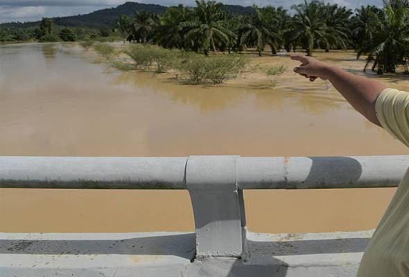 Limpahan air Sungai Muar itu menjejaskan penduduk Kampung Seberang Batu Badak dan Kampung Batu 5. - Gambar fail
