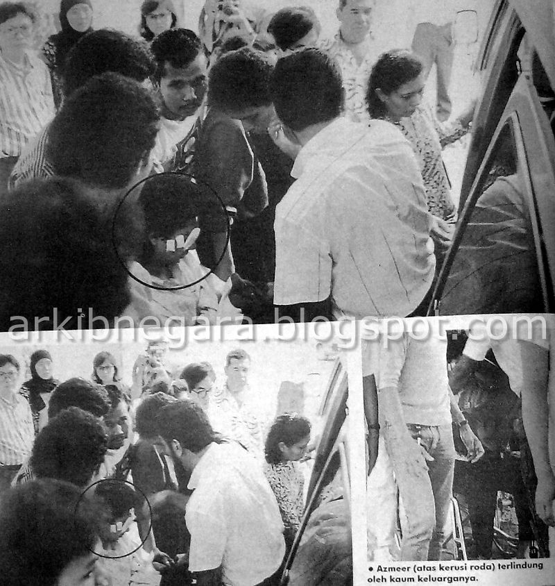 Azmeer dibawa ke wad kecemasan Hospital Universiti pada pukul 12.33 tengah malam. "Menurut keterangan yang dikeluarkan oleh Pengarah Hospital Universiti, Dr. Gurmukh Singh, bahagian muka Azmeer dipenuhi kaca ketika dibawa ke wad kecemasan hospital tersebut". Pada awal pagi 20 Jun itu Azmeer terus menjalani pembedahan pertama yang tamat pada pukul 3.30 pagi. Pada petang hari yang sama keluarga Azmeer yang berasal dari Singapura telah mendapat kebenaran daripada Hospital Universiti untuk memindahkan Azmeer ke Hospital Besar Singapura. Azmeer dibawa keluar dari Hospital Universiti dengan kawalan rapi oleh ahli keluarganya yang menghalang para jurugambar daripada merakamkan wajah Azmeer secara dekat. Untuk pengetahuan, kemalangan tersebut bukanlah yang pertama buat Azmeer kerana beliau "pernah terlibat dalam satu kemalangan hingga mengakibatkan tangan kirinya cacat"