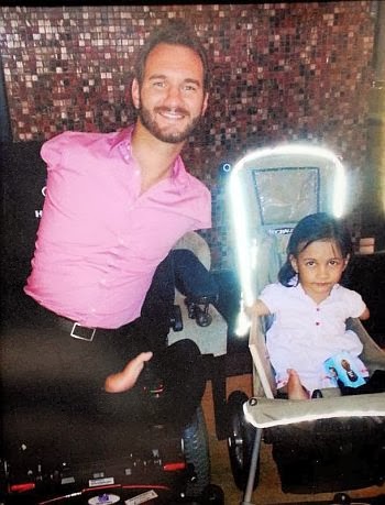 Di bawah ini adalah gambar pertemuan Adik Nur Damia bersama Nick Vujicac iaitu seorang Pakar Motivasi terkenal yang juga istimewa sepertinya. Gambar ini di ambil dari facebook Nick dan di dalam komennya Nick bercerita keluarga Nur Damia telah mengikuti Van yang dinaikinya sehingga mereka berhenti untuk mengisi minyak, semasa kunjungan Nick ke Kuala Lumpur yang diupdate pada bulan September 2013. Keluarga Nur Damia sempat jumpa dengannya dan beliau terperanjat kerana budak perempuan yang dibawa oleh keluarga ini sama sepertinya yang tiada tangan dan kaki. Kemudian Nick mengajak mereka balik ke hotel dan makan sama-sama.