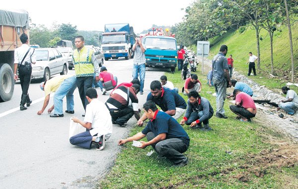 perlu ke nak buang2 kat jalan mcm tu..kot ye nak bagi kt org bagi la elok2.. |