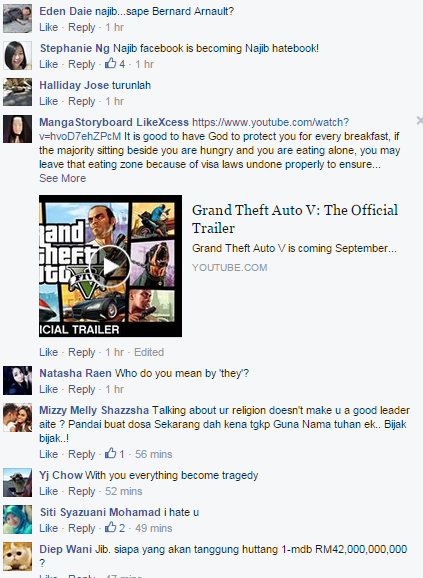nak cari komen yg bekap najib kat FB mmg susah sgt