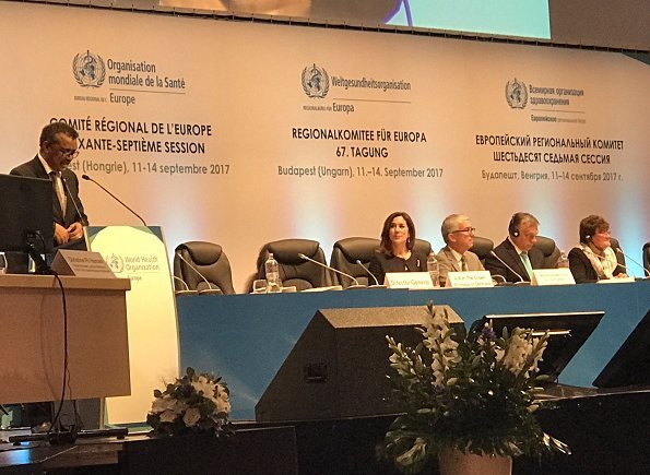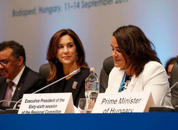 On Sept. 11, 2017, As the patron of Europe region of World Health Organization (WHO), Crown Princess Mary of Denmark attend the opening of the 67th session of the World Health Organization Regional Committee for Europe held at the Budapest Congress Center in Budapest, Hungary.