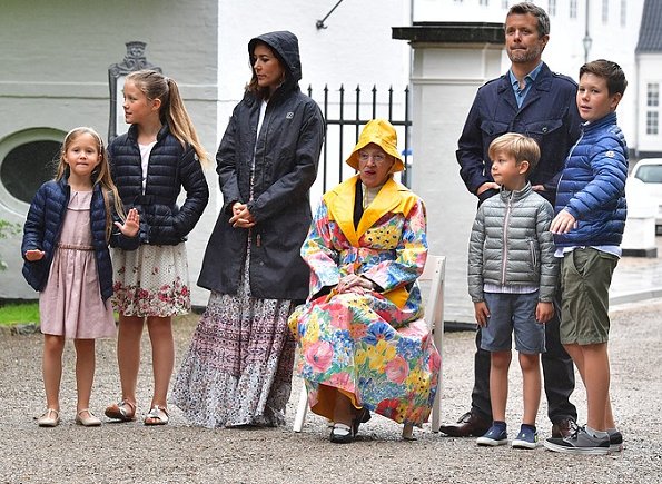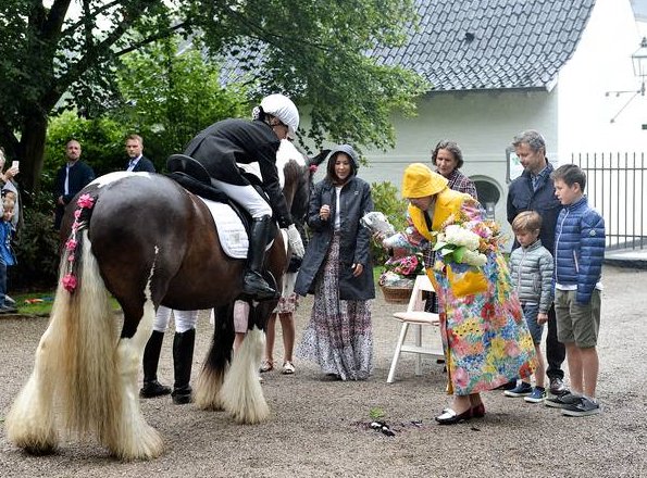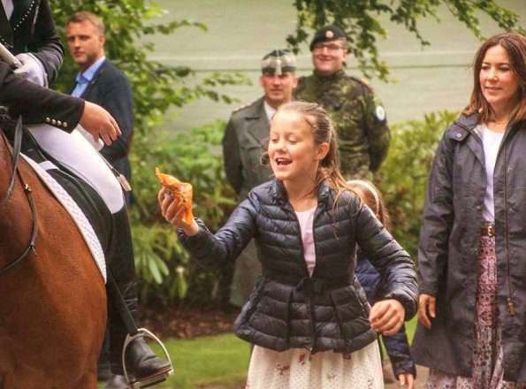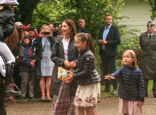 On July 16, 2017, Queen Margrethe, Crown Prince Frederik, Crown Princess Mary, Prince Vincent, Princess Josephine, Prince Christian and Princess Isabella attended the annual horse parade outside Gråsten Castle in Grasten, Denmark.
