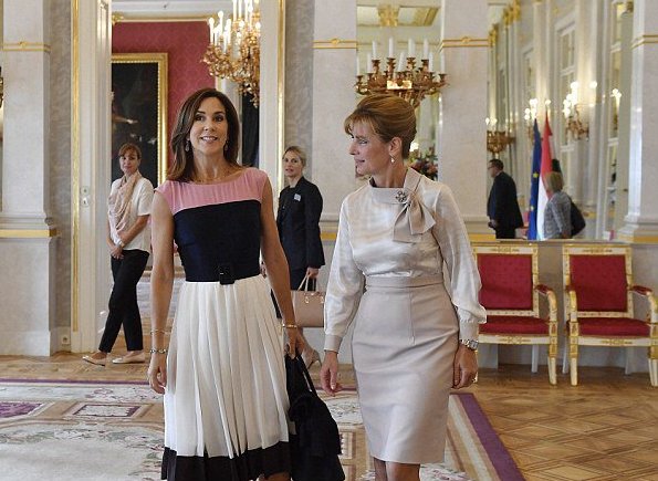 Crown Princess Mary of Denmark met with Hungary’s First Lady Anita Herczegh at Alexander Palace in Budapest, Hungary. Danish Crown Princess Mary arrived at Budapest today in order to attend the 67th session of the World Health Organisation (WHO) Regional Committee for Europe.