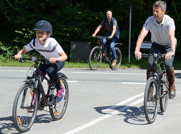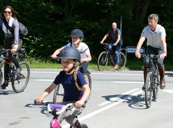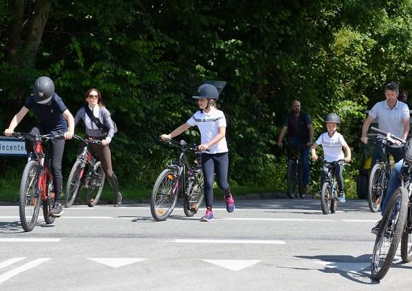 Crown Princess Mary and Prince Frederik of Denmark with their children Prince Christian, Princess Isabella, Princess Josephine and Prince Vincent were spotted biking near the Grasten Palace yesterday. Gråsten Palace is one of the summer residences of the Danish royal family.