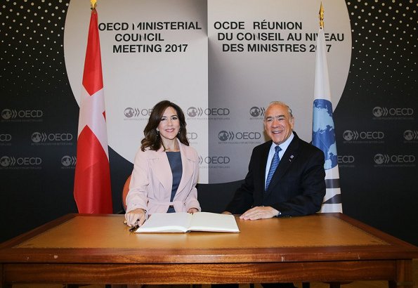 On June 6, 2017, Crown Princess Mary of Denmark attended the opening of Organisation for Economic Co-operation and Development (OECD) forum at the OECD Conference Centre in Paris. The mission of the OECD is to promote policies that will improve the economic and social well-being of people around the world.