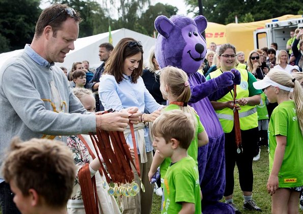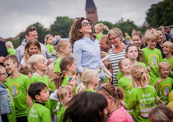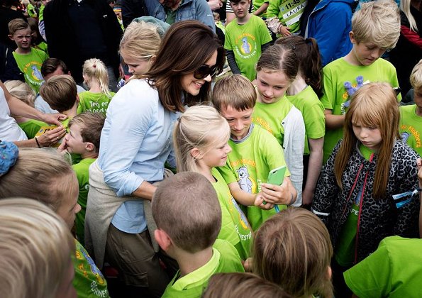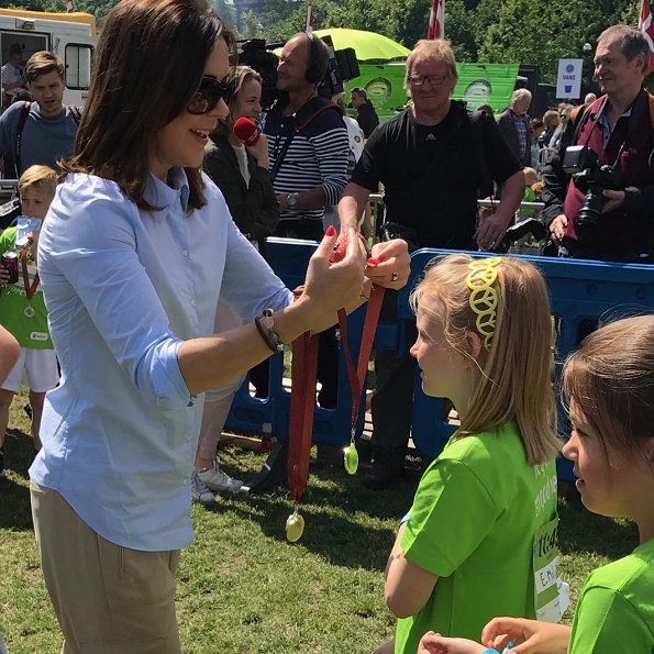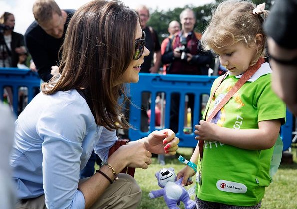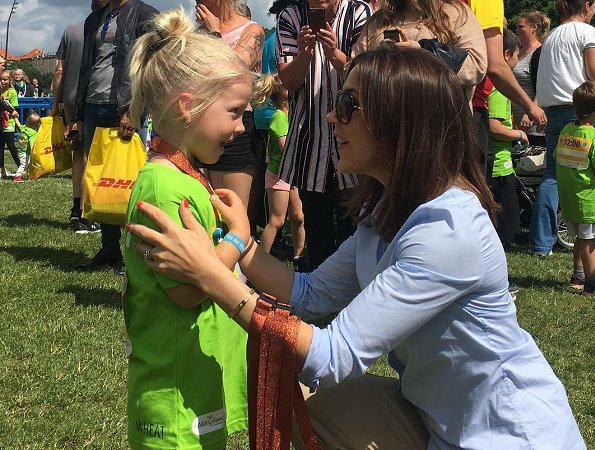 On June 10, 2017, Crown Princess Mary of Denmark attended the Children's Relay race 2017 held at the Fælledparken in Copenhagen as patron of the Mary Foundation who arranged the relay along with Save the children.