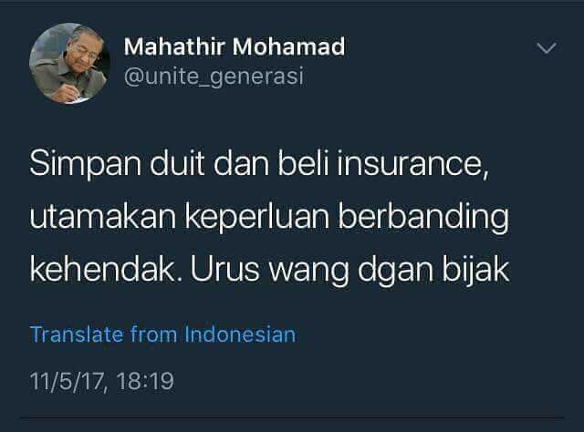Nak rasa rugi sangat, akhirnya tindakan stop bayar polisi, makan diri. Masalah dia, bukan diri dia je susah. Semua anak bini termasuk ayah ibu sendiri pun turut jadi susah dengan beban yang ditinggalkan.