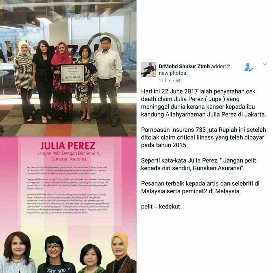 Arwah Juia Perez meninggalkan Rp 733,000,000 kepada warisnya. Kata-kata beliau juga sangat mendalam..