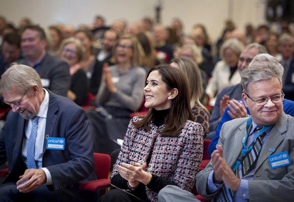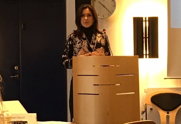 On December 11, 2018, Crown Princess Mary of Denmark attended a conference on "Responsibility and bottom line: Gender equality and women's health for businesses and investors" (med Sex og Samfund), held by IFU and Ministry of Foreign Affairs at the headquarters of Ministry of Foreign Affairs.