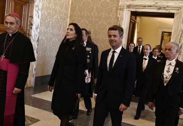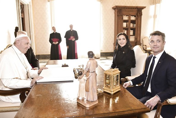 On the third day of their working visit to Rome, on November 8, 2018, Crown Prince Frederik and Crown Princess Mary of Denmark visited the Vatican City, and were received by Pope Francis at the Vatican.