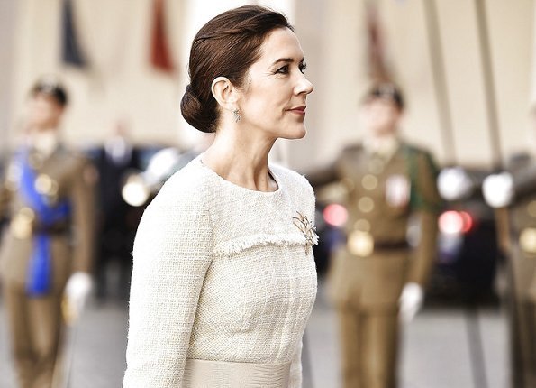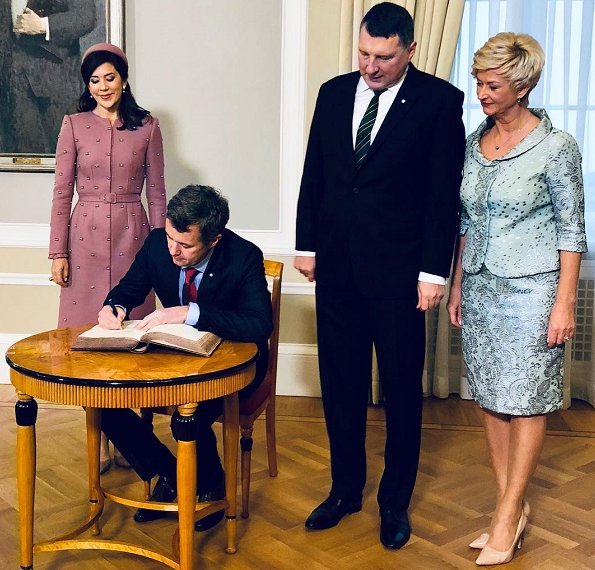 In the evening of December 6, 2018, Crown Prince Frederik and Crown Princess Mary of Denmark attended an official dinner at Riga Castle (Rīgas pils), hosted by President Raimonds Vējonis and First Lady Iveta Vējone.