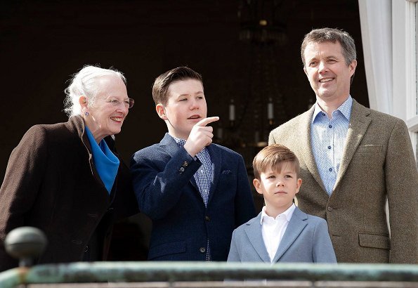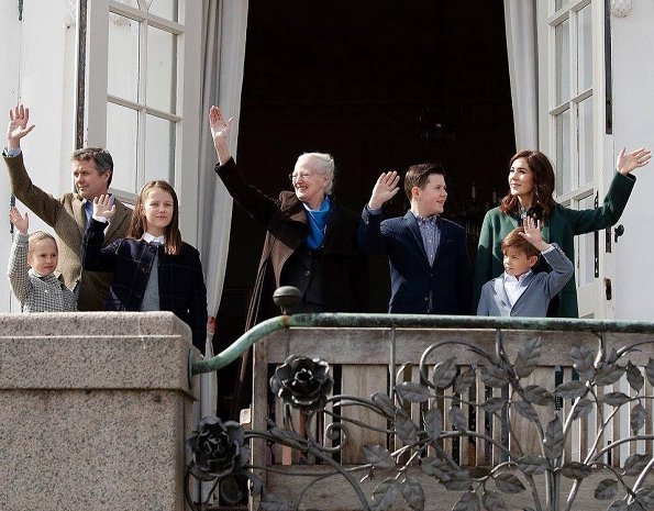 On April 16, 2019, Queen Margrethe of Denmark, Crown Prince Frederik, Crown Princess Mary, Prince Christian, Princess Isabella, Prince Vincent and Princess Josephine greeted people from the veranda of Marselisborg Castle in connection with 79th birthday of the Queen.