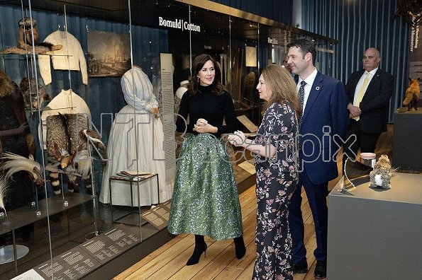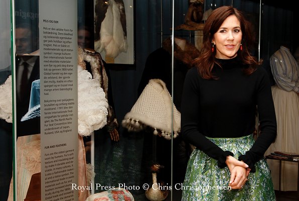 On April 12, 2019, Crown Princess Mary of Denmark attended the opening of "Fashioned from Nature" exhibition held at the National Museum of Natural History in Copenhagen.
