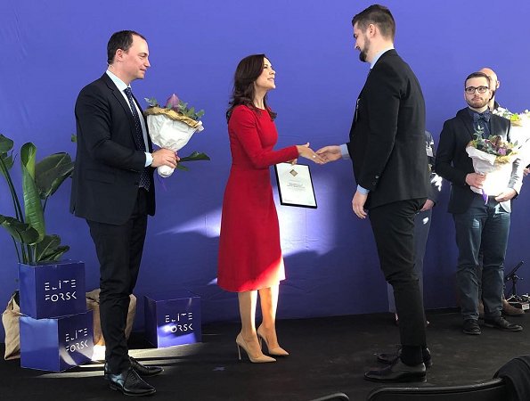 On February 28, Crown Princess Mary presented 2019 EliteForsk awards to five of Denmark’s best young researchers at an event held at the Copenhagen Opera House.