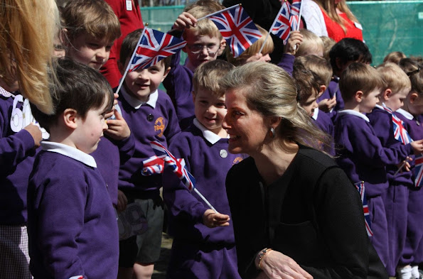 The Countess of Wessex tried her hand at table cricket on Wednesday during a visit to Treloars College, the Hampshire school of which she is royal patron.