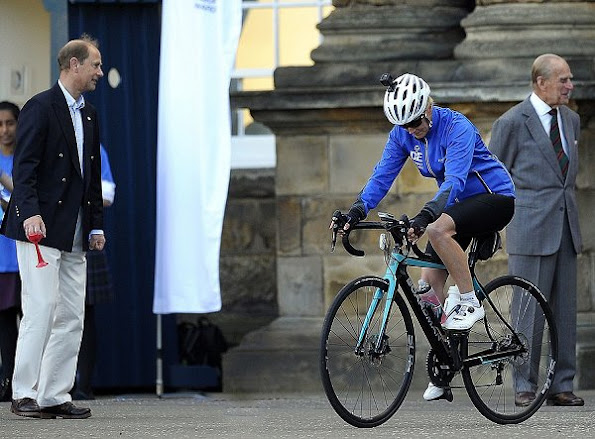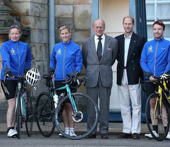 Sophie Countess of Wessex crosses the border between Scotland and England at Carter Bar, as she takes part in a 450-mile cycling challenge from the Palace of Holyroodhouse in Edinburgh to Buckingham Palace in London, for her 'DofE Diamond Challenge' which marks the 60th anniversary of The Duke of Edinburgh's Award Scheme.