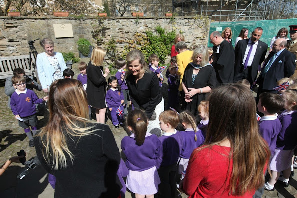 Prince Edward and Countess of Wessex greeted by children's choir on trip to Bristol