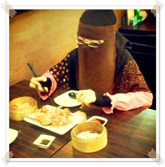 'Muslimah berniqab ini menikmati Dim Sum, sejenis makan istimewa masyarakat Cina'