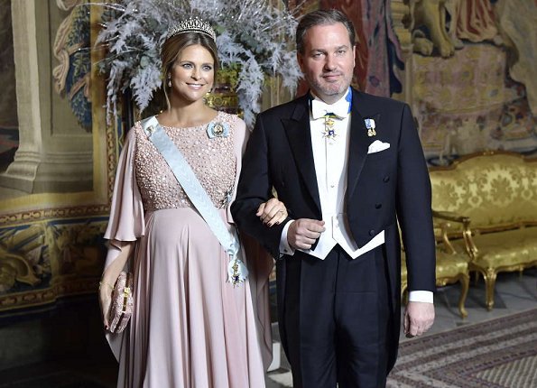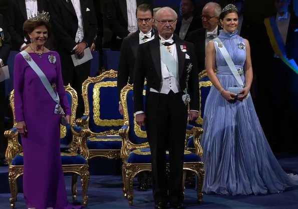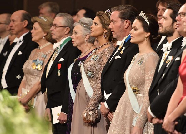 On December 11, Monday, King Gustaf hosted a traditional dinner at Stockholm Royal Palace, held for 2017 Nobel Laureates. The guests were welcomed by Swedish Royal family members, that is, King Gustaf, Queen Silvia, Crown Princess Victoria, Prince Daniel, Prince Carl Philip, Princess Sofia, Princess Madeleine and Christopher O'Neill at Vita Havet Assembly Rooms. The dinner was held at Karl XI's Gallery.