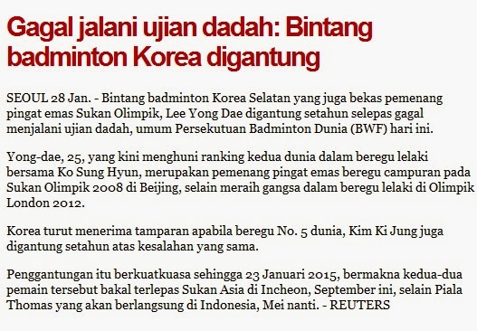 setahu saya, datuk LCW tidak pernah 'melarikan diri' daripada dipanggil menjalani ujian doping di luar pertandingan yang dilakukan BWF sepertimana yg dilakukan oleh bintang beregu utama korea, Lee Yong Dae