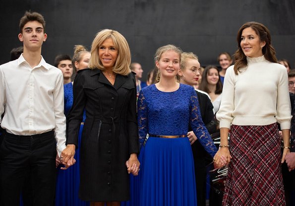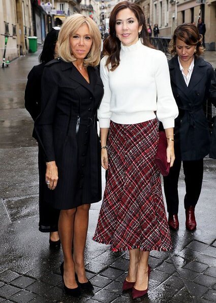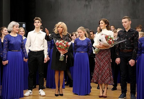 On the third day of Crown Prince Frederik and Crown Princess Mary's working visit to Paris, Crown Princess Mary, accompanied by First Lady Brigitte Macron, visited Lycee Lamartine school, where students can attend Danish classes.