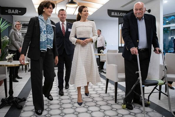 On the second day of Crown Prince Frederik and Crown Princess Mary's visit to Paris, Crown Princess Mary visited the nursing care home Korian Monceau. Afterwards, The Crown Princess attended an investment seminar at Maison du Danemark, which is a cultural institution that has the goal of promoting Denmark and the Danish culture. The Crown Princess then attended a business luncheon at the Danish “Restaurant Flora Danica”. The restaurant is in Maison du Danemark on Avenue des Champs-Elysées. Afterwards, The Crown Princess, together with health minister Magnus Heunicke, visited the private hospital Les Peupliers.