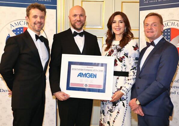 On October 24, 2019, Crown Prince Frederik and Crown Princess Mary attended the American Chamber of Commerce's 20th Anniversary Gala at Moltkes Mansion in Copenhagen.