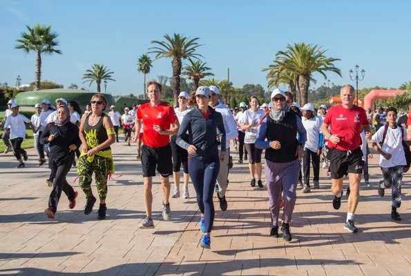 On the morning of September 4, the Crown Princess participated in an exercise run on the site of the seminar together with 2,000-3,000 young people from schools and universities in Morocco.