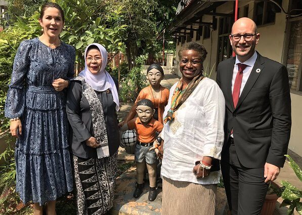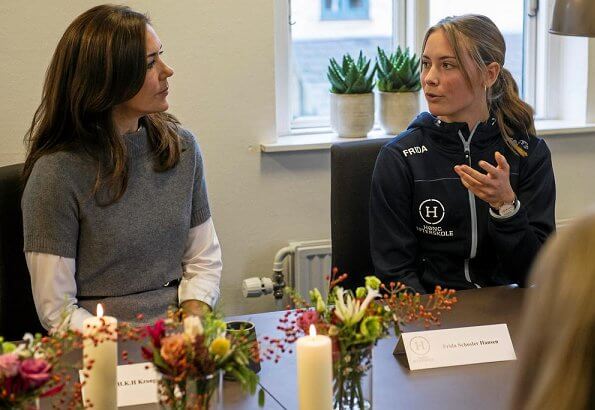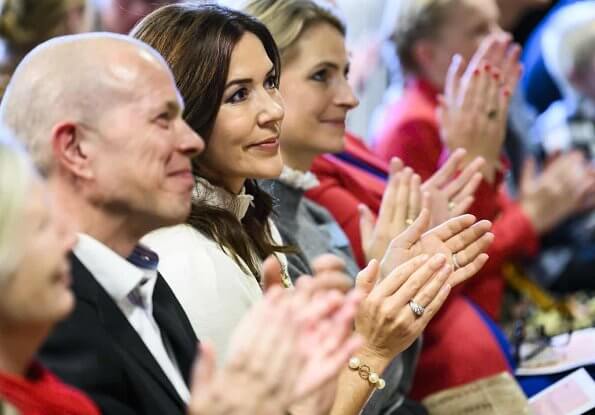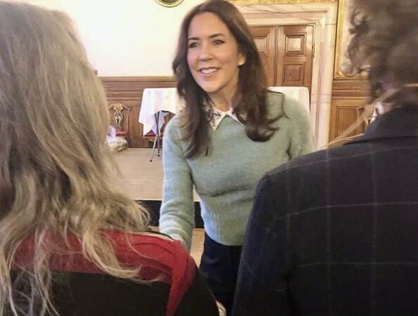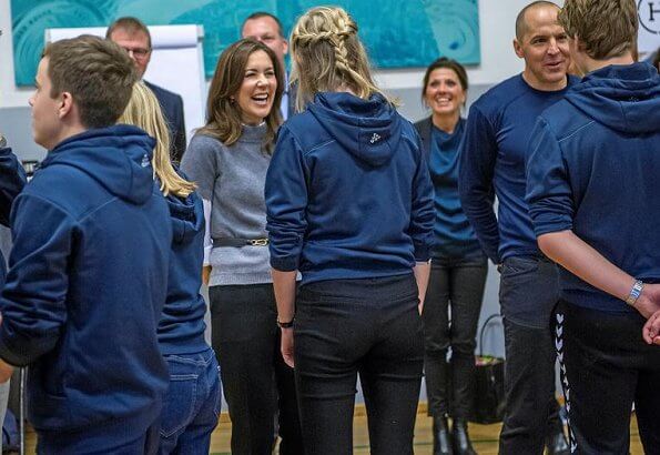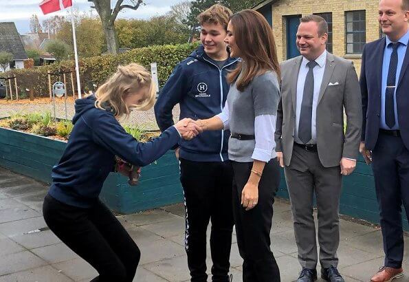 Crown Princess Mary visited Vibenshus School in Copenhagen together with members of "Save the Children" and "The Mary Foundation" and there, she attended a working meeting with leaders of the 'Free of Bullying' programme from Greenland, Estonia, Iceland, the Faroe Islands and Romania.