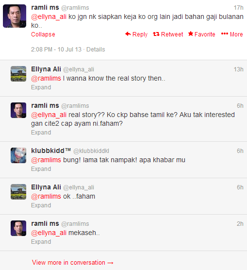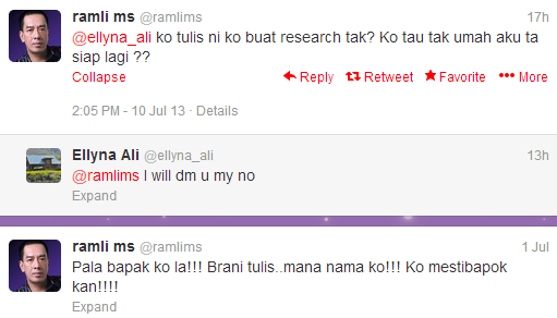 “Penulis portal itu boleh pergi !@#$$%. Why can’t people think of the repercussions yang saya dan Alyah perlu tanggung selepas berita ini disiarkan? (Tiada siapakah yang boleh memikirkan tentang akibat yang saya dan Alyah perlu tanggung selepas berita tersebut disiarkan?)